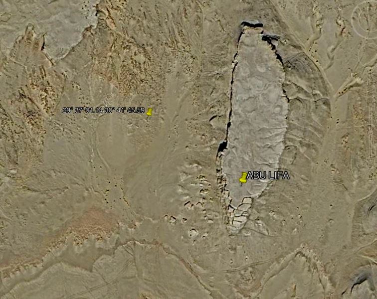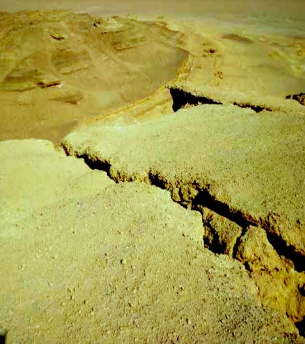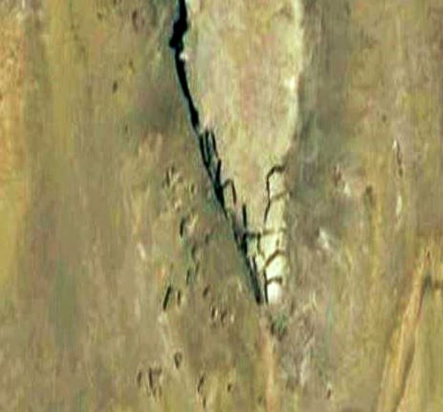 The fractured end of the couple of hundred feet high Abu Lifa escarpment from space