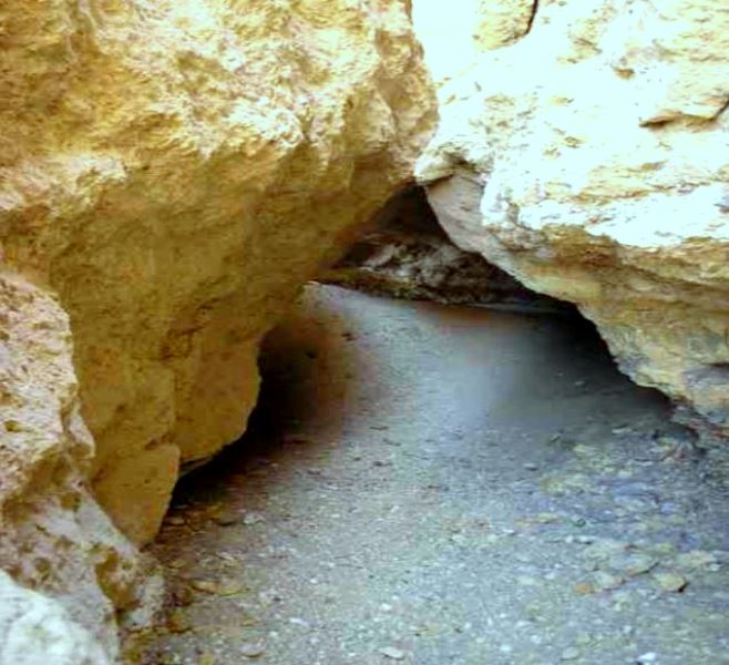 We continued between the slab fissures, past the lookout post and around the whole nose of the escarpment. We found there were even more caves mostly filled with sand mostly inaccessible under the rock slabs. It was entirely possible the whole place was linked with underground tunnels joining to the ones at the main entrance.