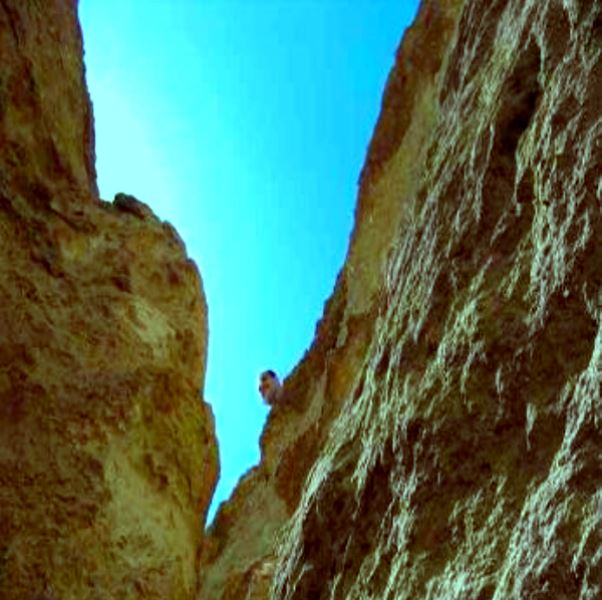 I saw our guide in the distance and called him to come at last! J. had also picked up that there was some excitement. I called to Amir to come immediately as I had found something incredible. He was reluctant because of the danger. I urged him saying there was something amazing he just ‘had’ to come and see, and at last he agreed, but I was scraping down to the bottom of the crack again already. I just kept calling him to hurry up behind me. Finally he appeared at the top of the fissure and agreed to follow! I didn’t tell him about the spider until later hehe.